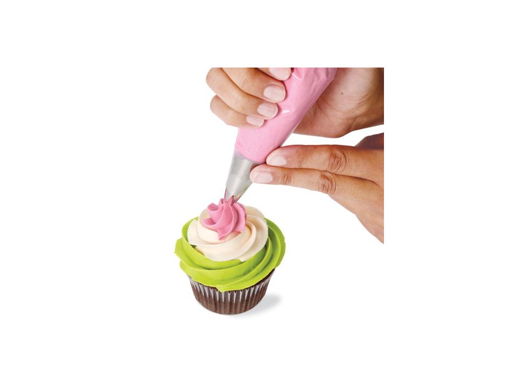 Acest set practic de duze și pungi de decorat este perfect pentru cofetarii amatori și profesioniști. Cu ajutorul duzelor pentru decorat, puteți adăuga ornamente pe torturi folosind cremă de unt sau cremă de ciocolată. Setul este ideal pentru crearea cupcakes-urilor populare, pe care le puteți decora cu toppinguri, ciocolată, decorațiuni din zahăr, nuci, cocos și altele. Cupcakes-urile sunt perfecte pentru evenimente sociale sau pentru micul dejun.