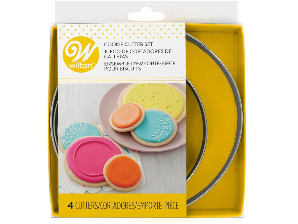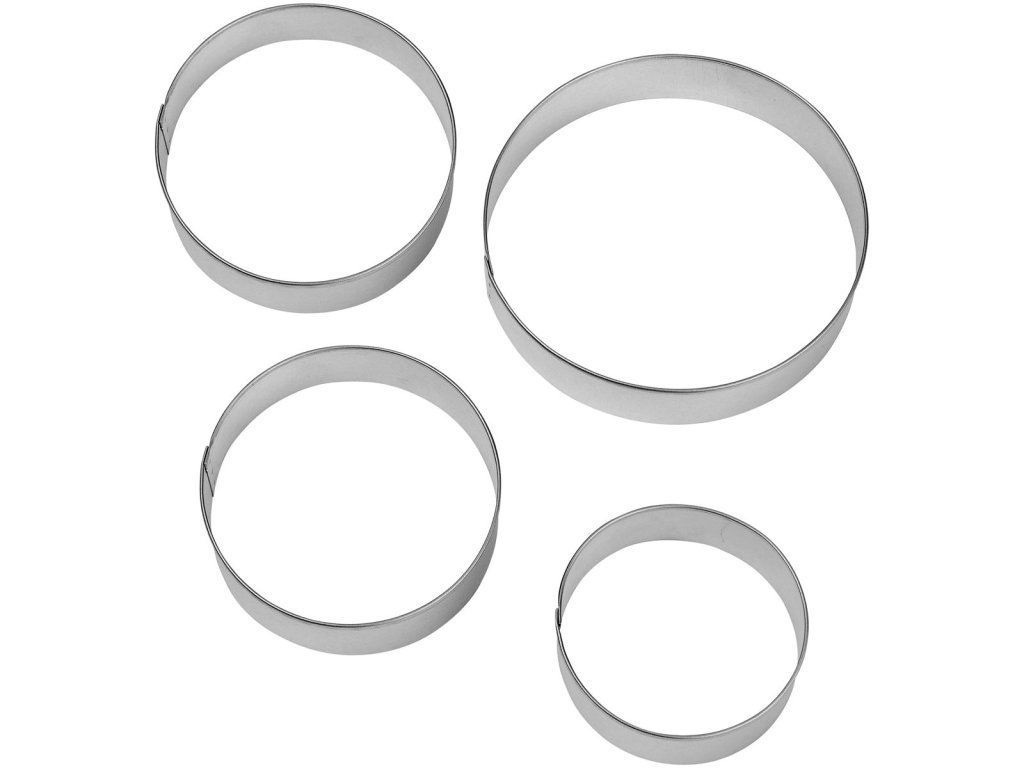Set de forme pentru decupat în formă de cerc, care include 4 dimensiuni diferite. Produsele decupate vor decora perfect masa de Crăciun sau chiar bradul. Ideal pentru prepararea biscuiților de casă, turtei dulci și fursecurilor. Formele sunt potrivite și pentru decuparea din fondant sau marțipan.