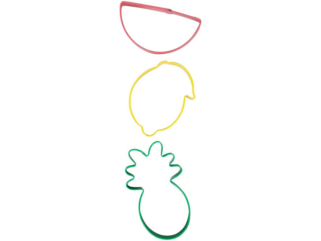 Set de forme pentru decupat în formă de fructe, include ananas, pepene și lămâie. Aceste forme vor decora perfect torturile tematice de aniversare și prăjiturile. Potrivite atât pentru decuparea din fondant și marțipan, cât și din aluaturi pentru turtă dulce, biscuiți sau aluaturi fragede.