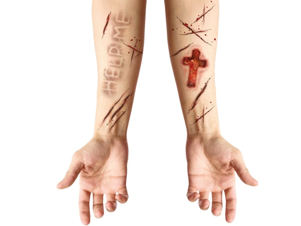Costumul D-voastră de carnaval sau de Halloween poate părea și mai credibil datorită diverselor accesorii, cum ar fi tatuajele Help me. Acest accesoriu se potrivește pentru diverse costume de carnaval, bineînțeles că lăsăm utilizarea la imaginația D-voastră.