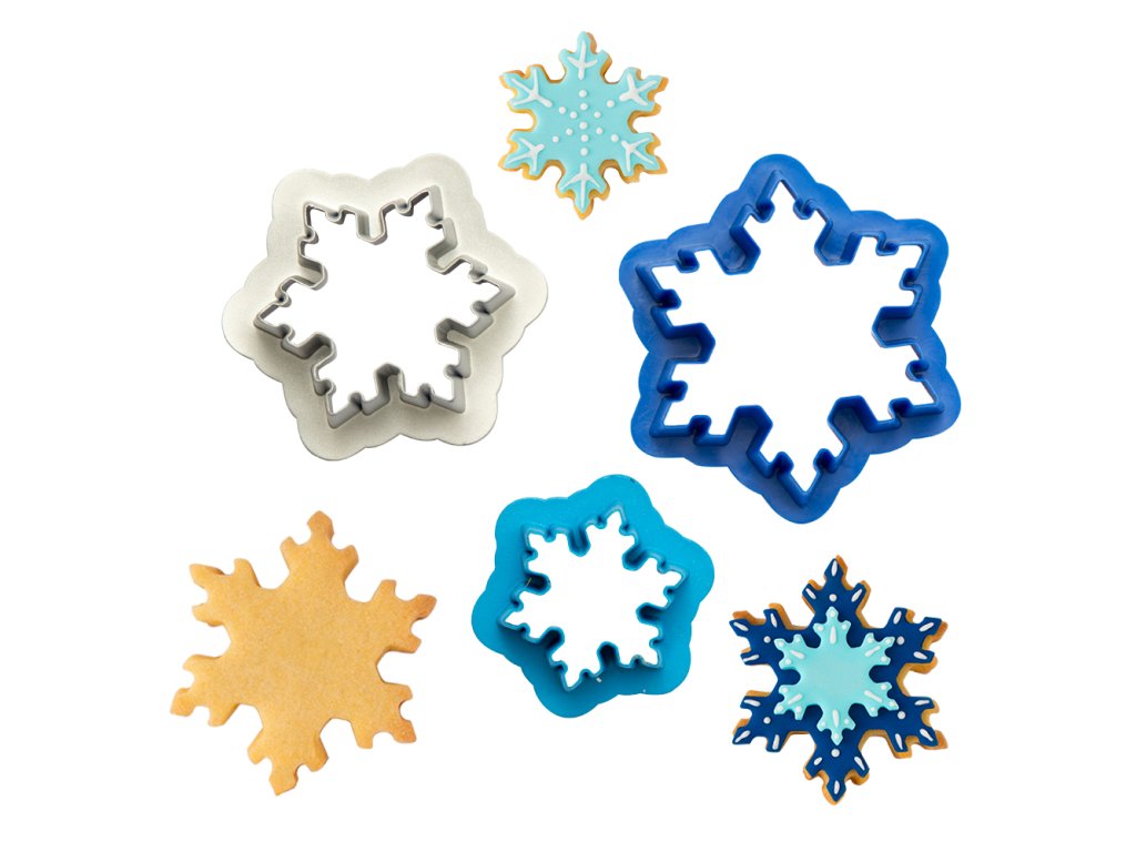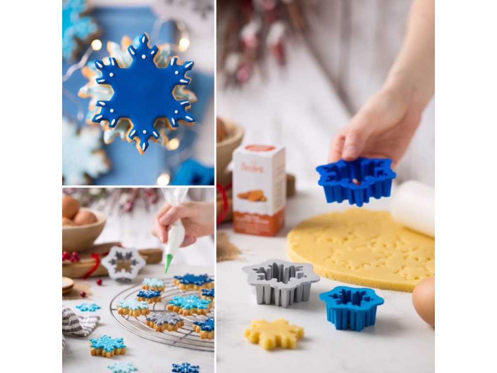 Setul de decupatoare cu fulgi de zăpadă include 3 dimensiuni diferite. Produsele decupate vor decora perfect bradul sau masa de Crăciun. Le puteți folosi la crearea de produse de patiserie fursecuri de casă, turtă dulce și prăjituri. Decupatoarele sunt potrivite și pentru tăierea fondantului sau a marțipanului.