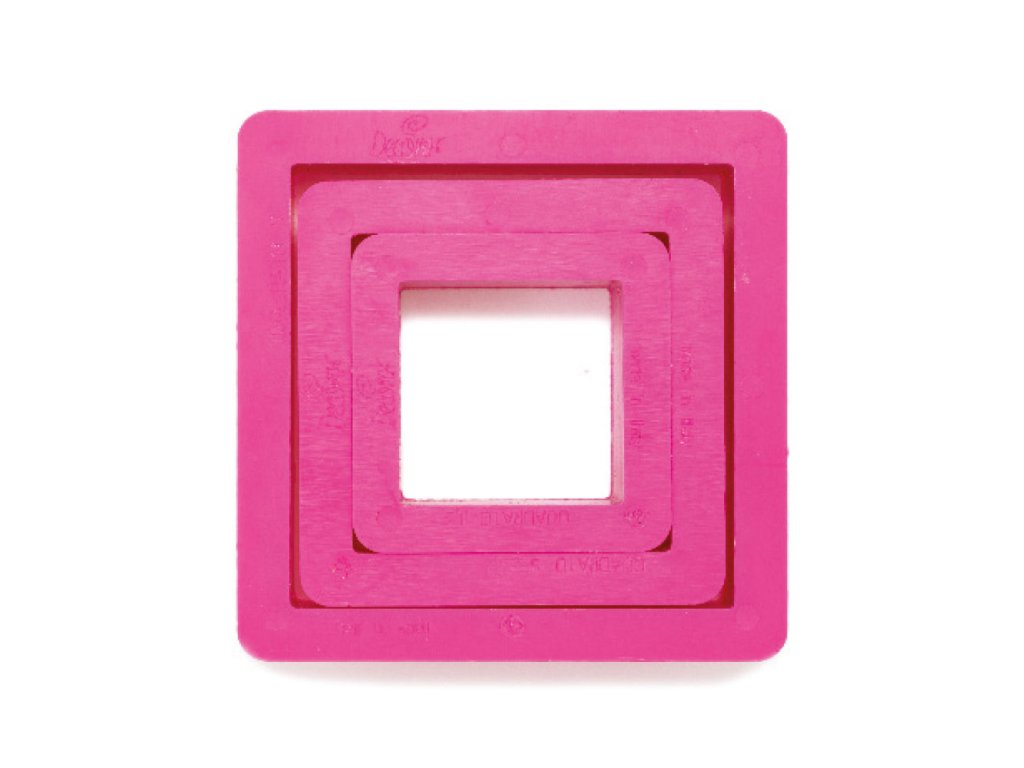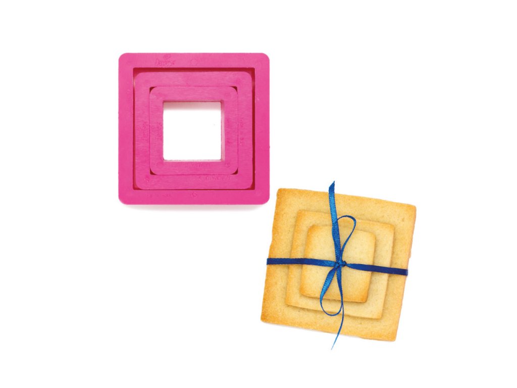 Setul de decupatoare pătrate include 3 dimensiuni diferite. Produsele decupate vor decora perfect torturile romantice, de nuntă sau de ziua de naștere. Le puteți folosi la crearea de produse de patiserie fursecuri de casă, turtă dulce și prăjituri. Decupatoarele sunt potrivite și pentru tăierea fondantului sau a marțipanului.