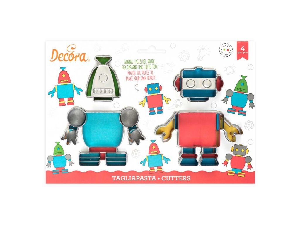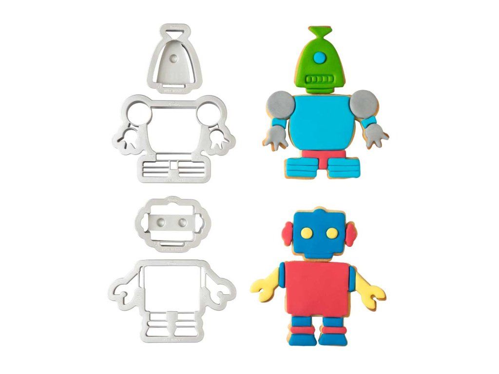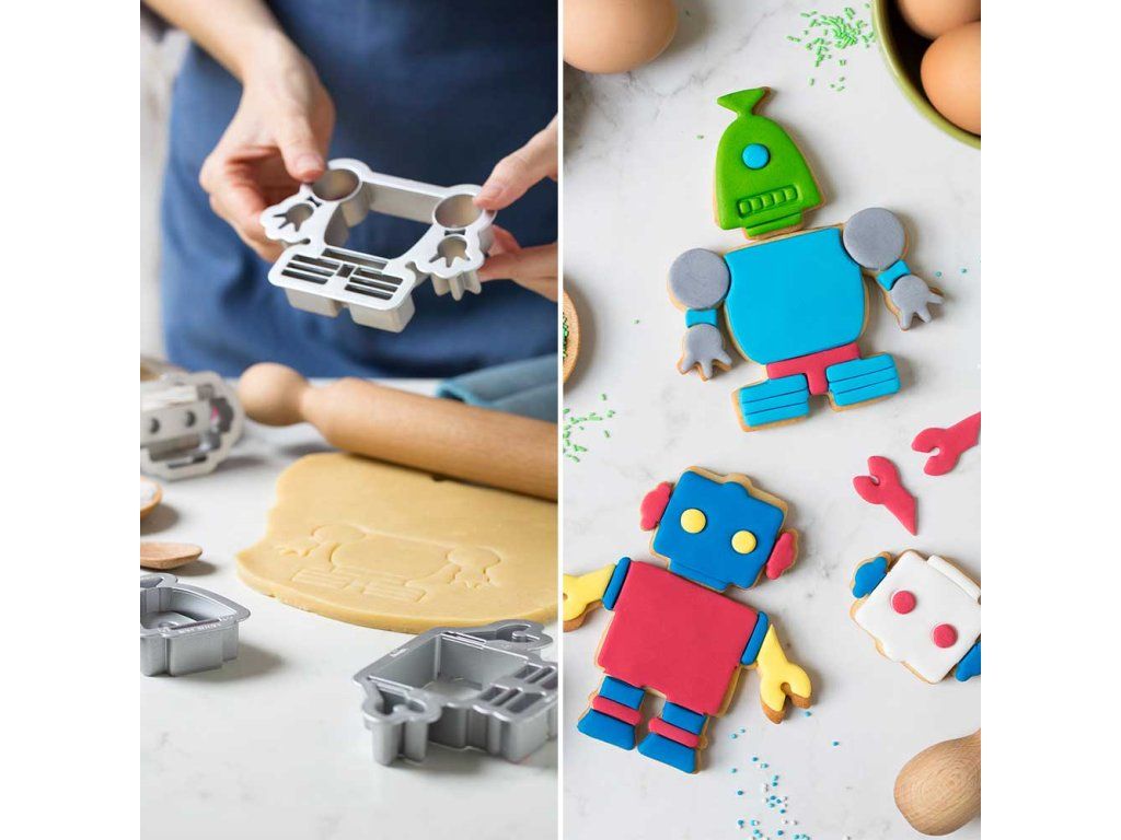 Setul in forma de robot este realizat din plastic si impartit in 2 capete si 2 corpuri robot. Produsele din acesta vor decora perfect prăjiturile și deserturile tematice. Este potrivit nu numai pentru tăierea din fondant și marțipan, ci și din turtă dulce, biscuiți sau Linz.