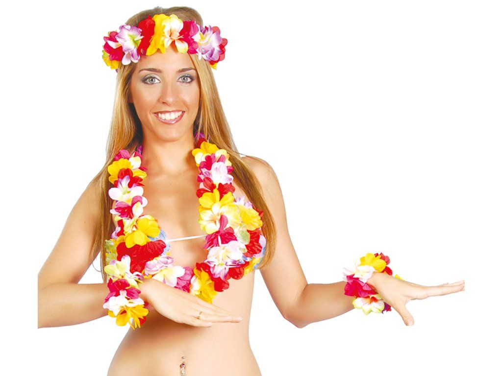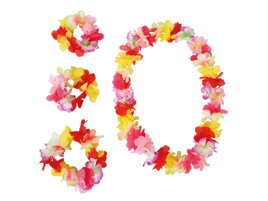 Setul hawaiian multicolor este un accesoriu important pentru o petrecere de vară la piscină sau pentru o petrecere tematică hawaiiană sau tropicală.