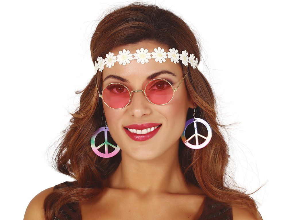 Costumul de Halloween sau carnaval, poate fi mai credibil si datorită diferitelor accesorii cum este acest Set Hippies - bentită, ochelari, cercei. Acest accesoriu se potriveste pentru diferite costume pentru carnaval cu tematică Hippies, bineînteles lăsăm totul la decizia imaginatiei voastre.