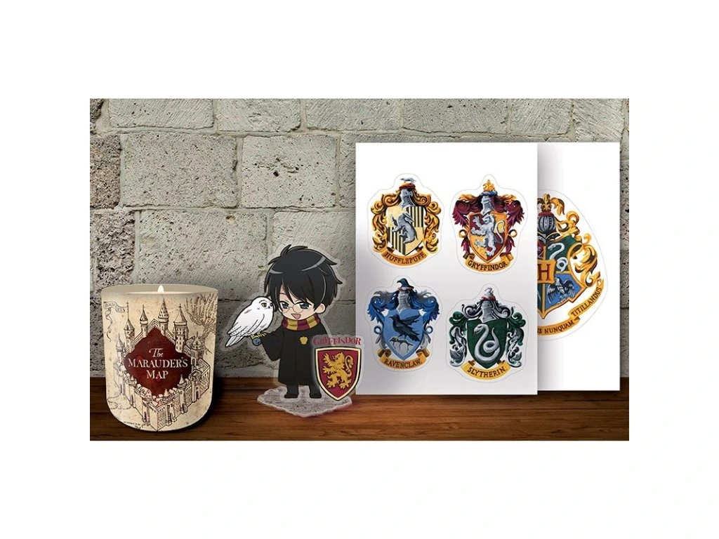 Un set de 3 cadouri practice va fi alegerea ideală pentru a fi oferit iubitorilor lumii vrăjitorilor. Setul include o lumânare, o figurină și autocolante, toate ambalate frumos într-o cutie de cadou tematică de colecție.