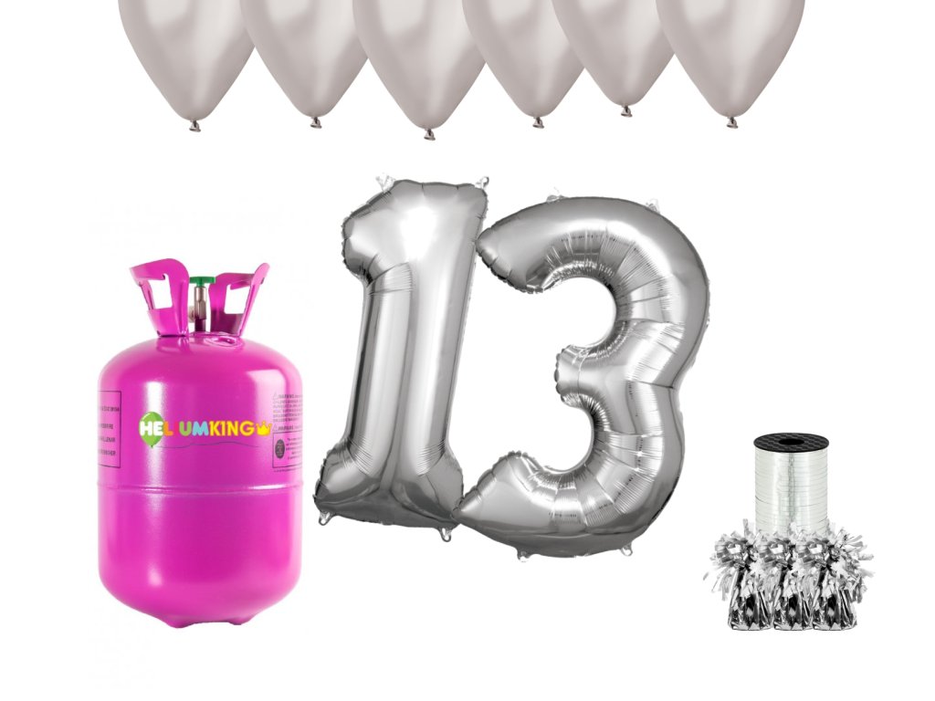 Set pentru petrecerea 13 aniversări a zilei de naștere cu heliu și baloane argintii