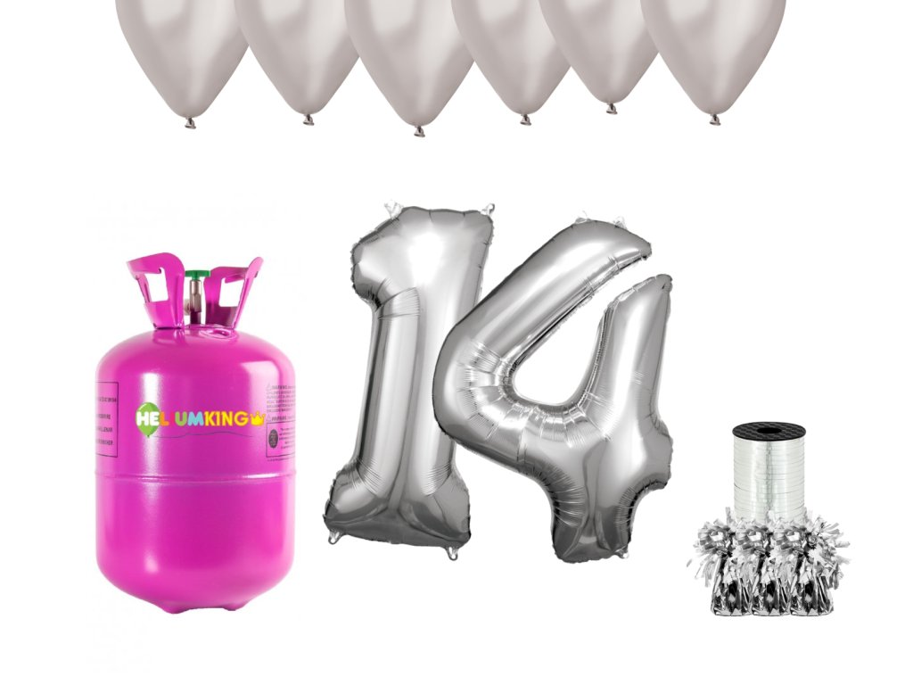 Set pentru petrecerea 14 aniversări a zilei de naștere cu heliu și baloane argintii