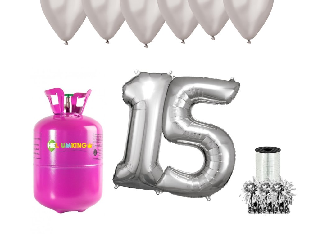 Set pentru petrecerea 15 aniversări a zilei de naștere cu heliu și baloane argintii