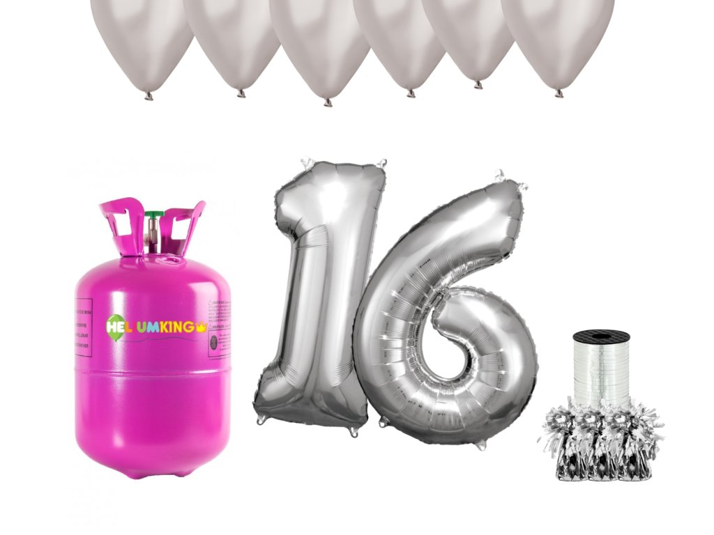 Set pentru 16 petrecere a aniversării zilei de naștere cu heliu și baloane argintii