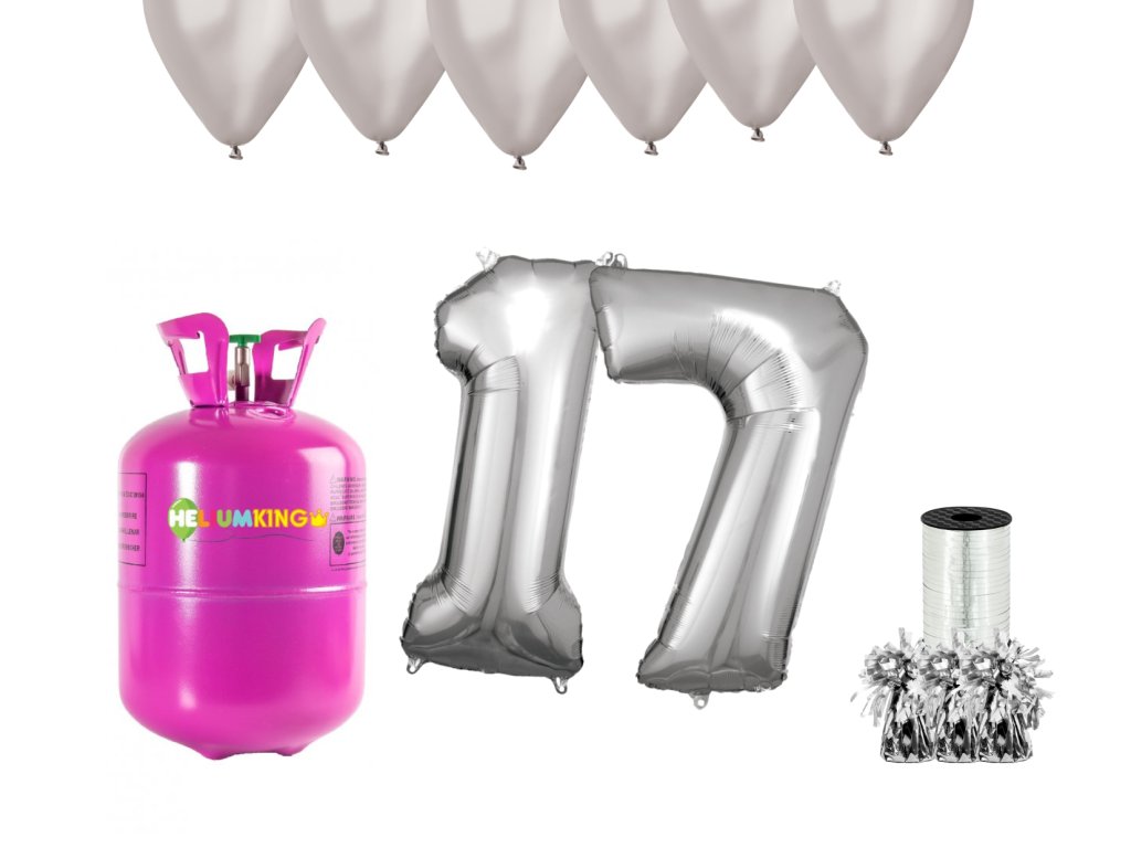 Set pentru petrecerea 17 aniversări a zilei de naștere cu heliu și baloane argintii