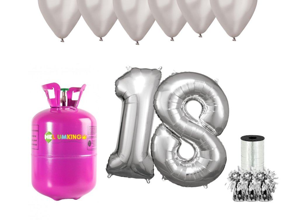 Set pentru petrecerea 18 aniversări a zilei de naștere cu heliu și baloane argintii