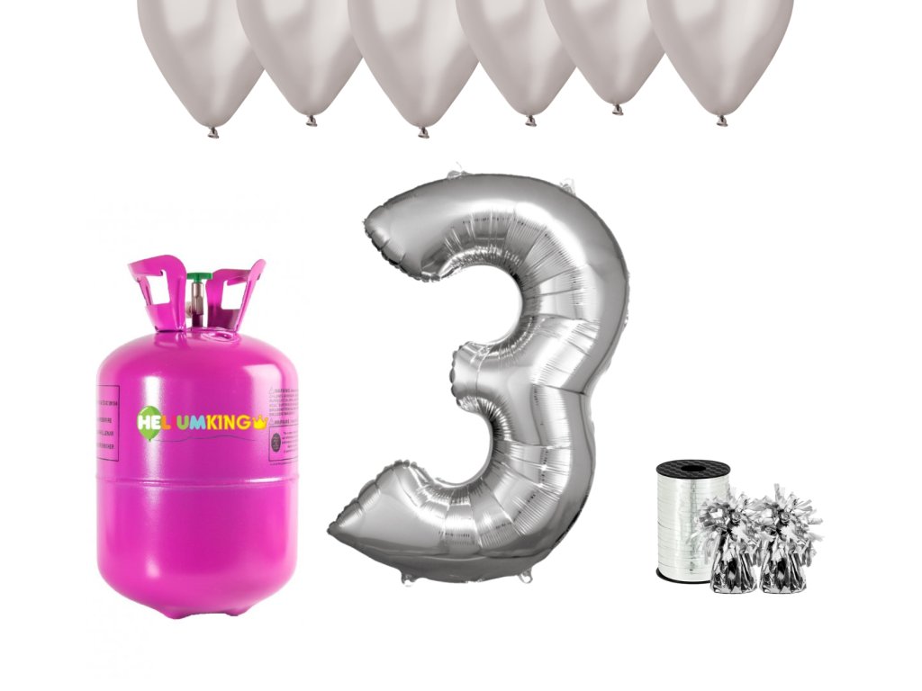 Set pentru petrecerea 3 aniversări a zilei de naștere cu heliu și baloane argintii