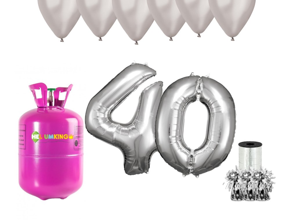Set pentru 40 petrecere a aniversării zilei de naștere cu heliu și baloane argintii
