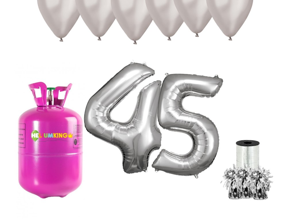 Set pentru petrecerea 45 aniversări a zilei de naștere cu heliu și baloane argintii