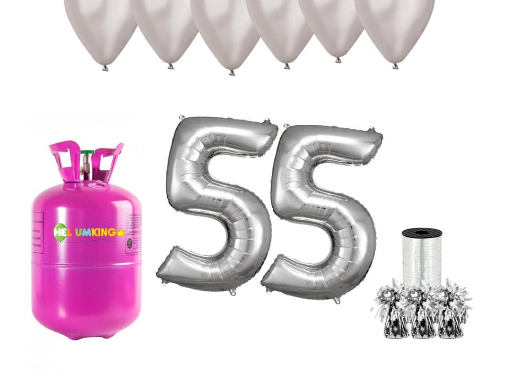 Set pentru petrecerea 55 aniversări a zilei de naștere cu heliu și baloane argintii