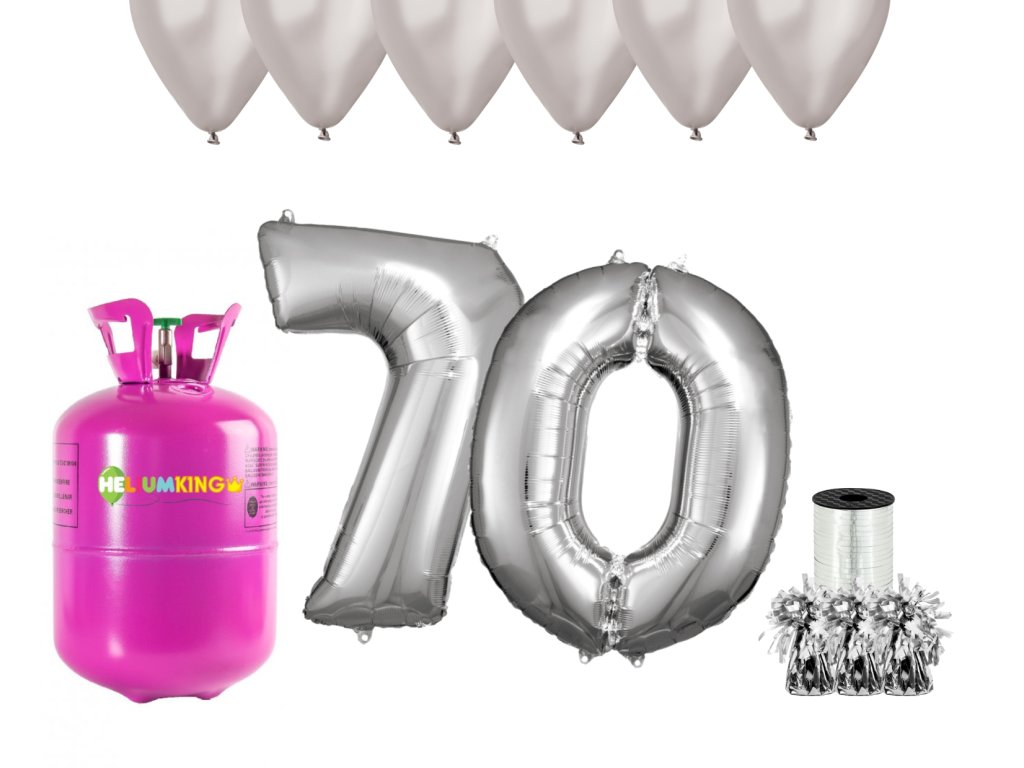 Set pentru 70 petrecere a aniversării zilei de naștere cu heliu și baloane argintii
