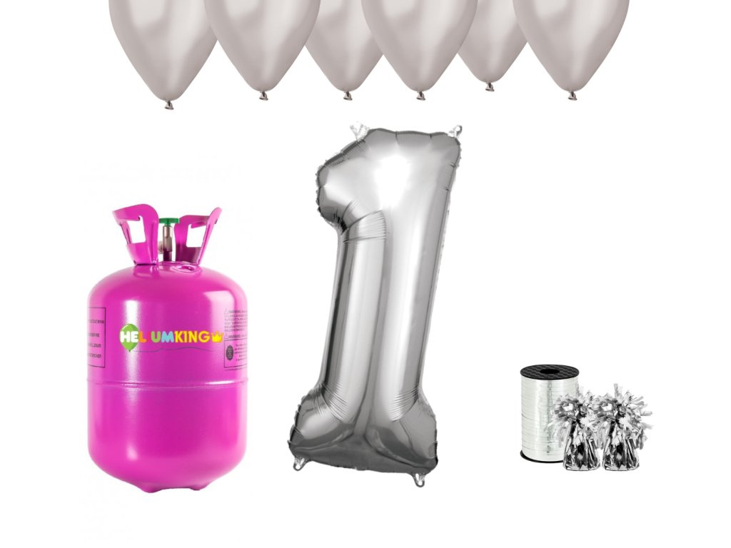 Set pentru prima petrecere a aniversării zilei de naștere cu heliu și baloane argintii