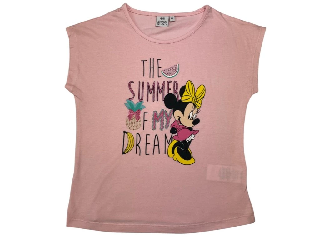 Piesele de modă colorate le permit fetelor să aleagă haine confortabile cu imprimeu original Minnie Mouse. Tricourile cu maneca scurta si pantalonii scurti sunt o piesa simpla in trend, fie ca combini accesorii mai elegante sau sport, cu siguranta nu trebuie sa lipseasca din garderoba.