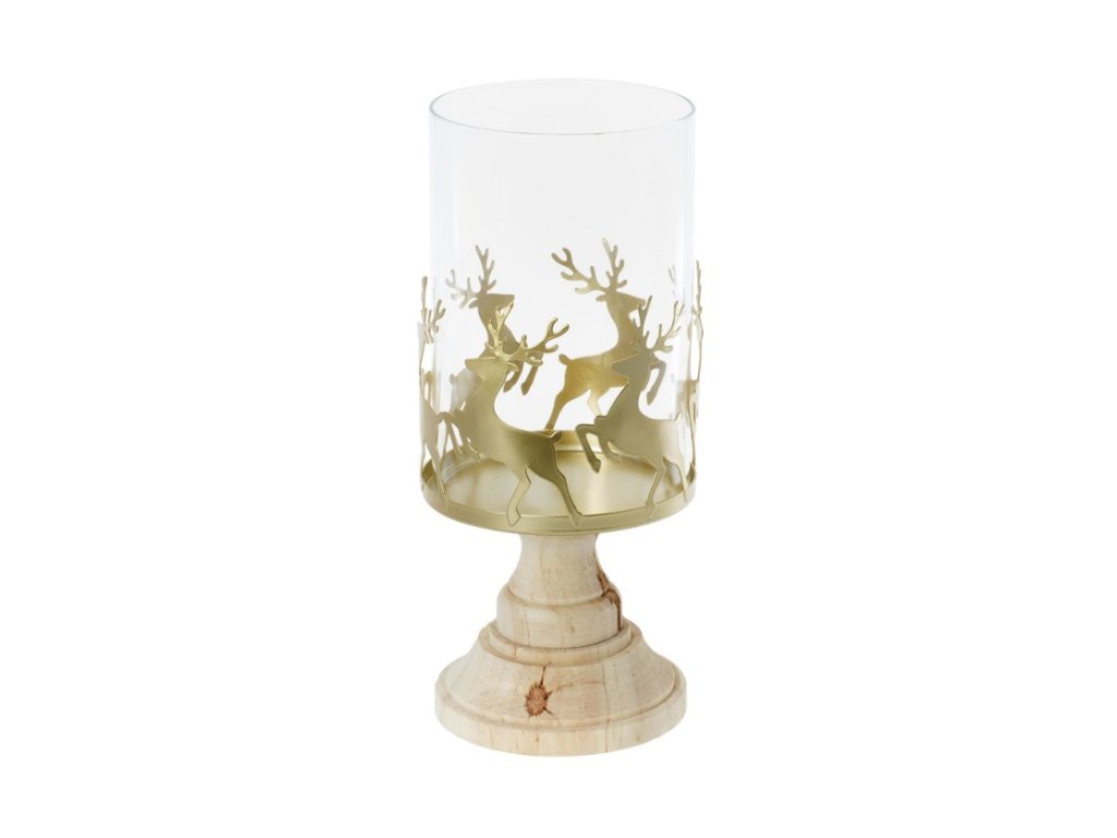 Sfeșnic pe suport din lemn - Cerbi aurii 12,5 x 25 cm