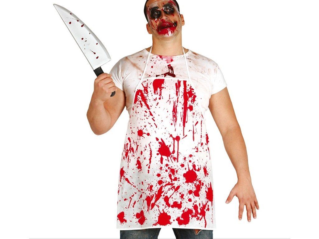 Costumul D-voastră de carnaval sau de Halloween poate, de asemenea, să arate mai credibil datorită diverselor accesorii, cum ar fi acest șorț de sânge. Acest accesoriu se potrivește cu diverse costume pentru carnaval cu tema horror, bineînțeles lăsăm utilizarea acestuia la imaginația D-voastră.