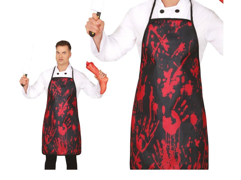 Completați-vă costumele horror cu acest impresionant șorț însângerat de culoare neagră! Este accesoriul ideal pentru cei care vor să se transforme într-un bucătar întunecat, un criminal în serie sau o altă figură inspirată din filmele de groază.