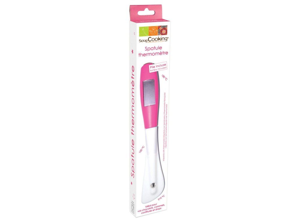 Spatula din silicon cu termometru conceputa pentru a controla temperatura de topire a ciocolatei, cremelor, marmeladelor, gemurilor, siropurilor, sosurilor si multe altele. Un instrument practic și util pentru toți iubitorii producției de ciocolată de casă. Racleta măsoară temperaturi de la -50 ° C la 300 ° C.