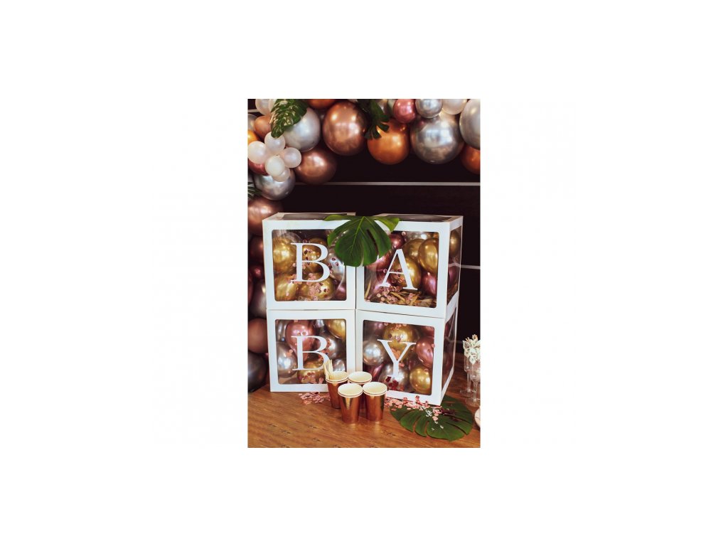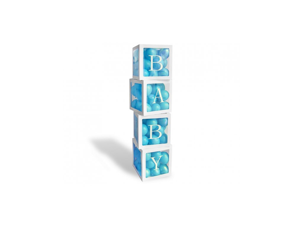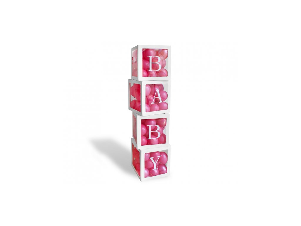Un suport la îndemână pentru baloane în formă de cub pentru a vă ajuta să creați decorațiuni originale pentru sărbătorile de naștere a bebelușului sau pentru baby showers.