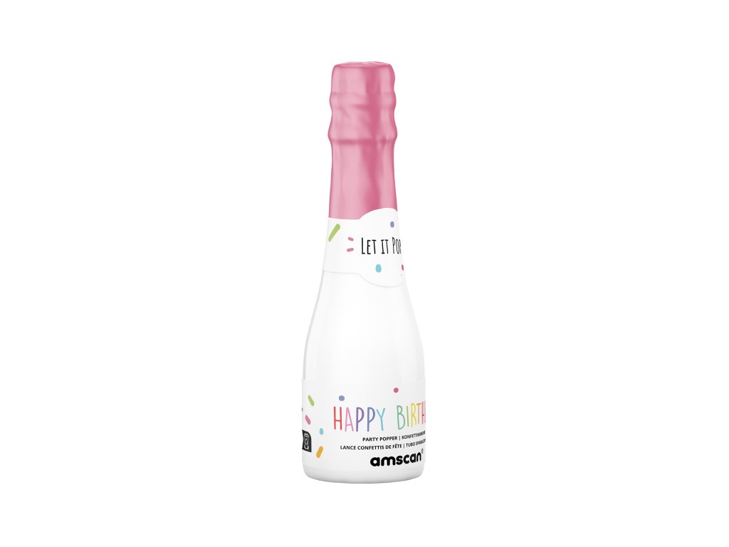 Ziua de naștere este despre culoare și distracție! Aceste sticluțe sunt umplute cu confetti rotunde în nenumărate nuanțe vibrante și au inscripția „Happy Birthday” pe folia retractabilă. Pur și simplu rotiți baza și așteptați o ploaie magică de confetti! Fiecare sticlă are o înălțime de 16 cm și conține gaz comprimat.