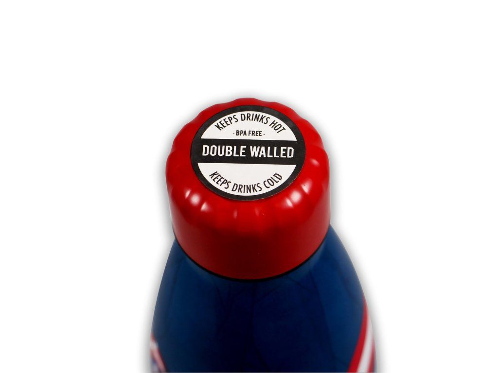 Căpitanul America trebuie să rămână hidratat pentru a salva lumea. O sticlă de metal cu sigla scutului său va asigura că băutura rămâne fierbinte sau rece mai mult timp.