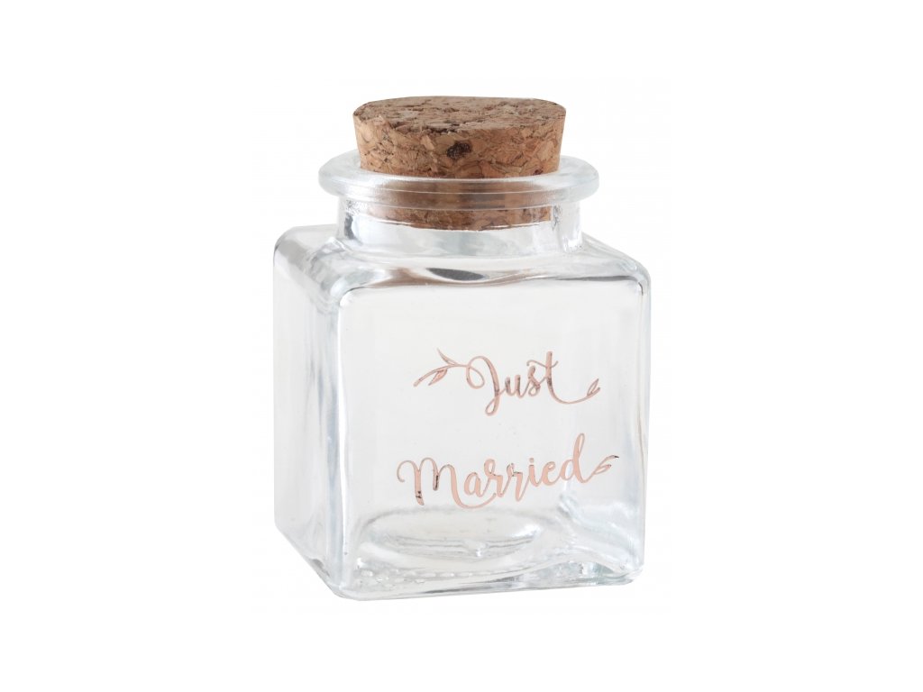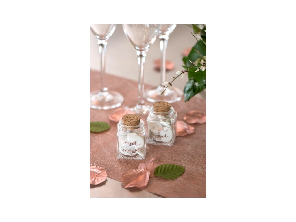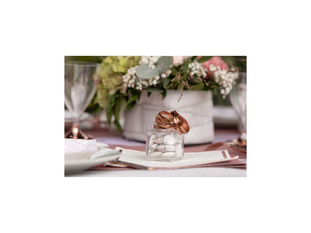 Decorați mesele de nuntă cu aceste sticle cu litere rose gold, care fac parte integrantă din decorul mesei.