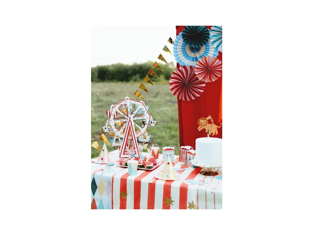 Pregătește-te pentru o adevărată aventură a gusturilor! Acest suport original pentru gustări, în formă de roată panoramică, va transforma orice petrecere într-un vârtej de distracție. Umple-l cu dulciuri, fructe sau gustări sărate și petrecerea ta se va transforma într-un adevărat parc de distracții! Copiii vor fi încântați, adulții surprinși, iar toată lumea va dori să guste ce urmează să apară în următorul „vagon”. Cu acest suport, petrecerea ta va fi plină de râsete, culoare și experiențe de neuitat. Dă startul distracției cu stil și oferă-le invitaților tăi gustări cum nu s-au mai văzut!
