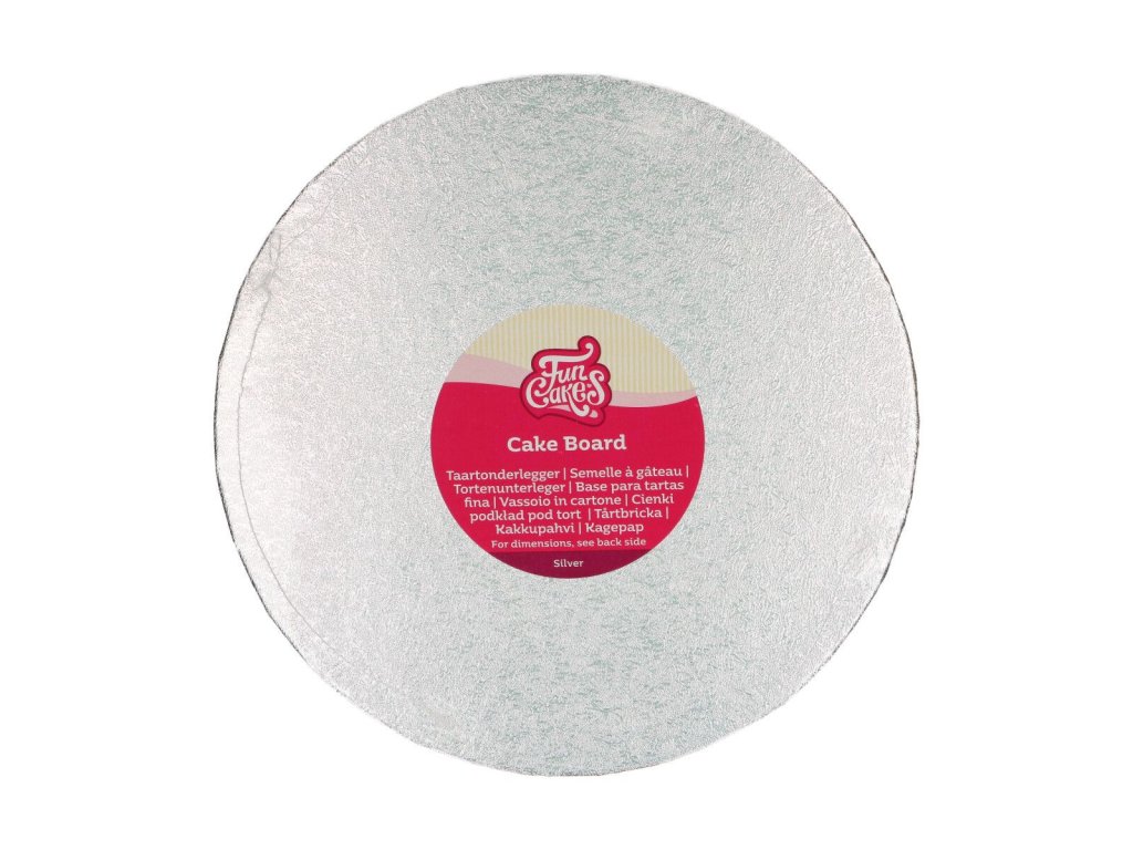 Suportul realizat din carton cu o suprafață argintie cu un aspect elegant. Suportul este realizat dintr-un material mai rezistent, ceea ce asigură că ține și torturile mai grele. Suportul rotund argintiu va da torturilor un aspect mai luxos si va iesi in evidenta in special pentru torturile festive si de nunta.