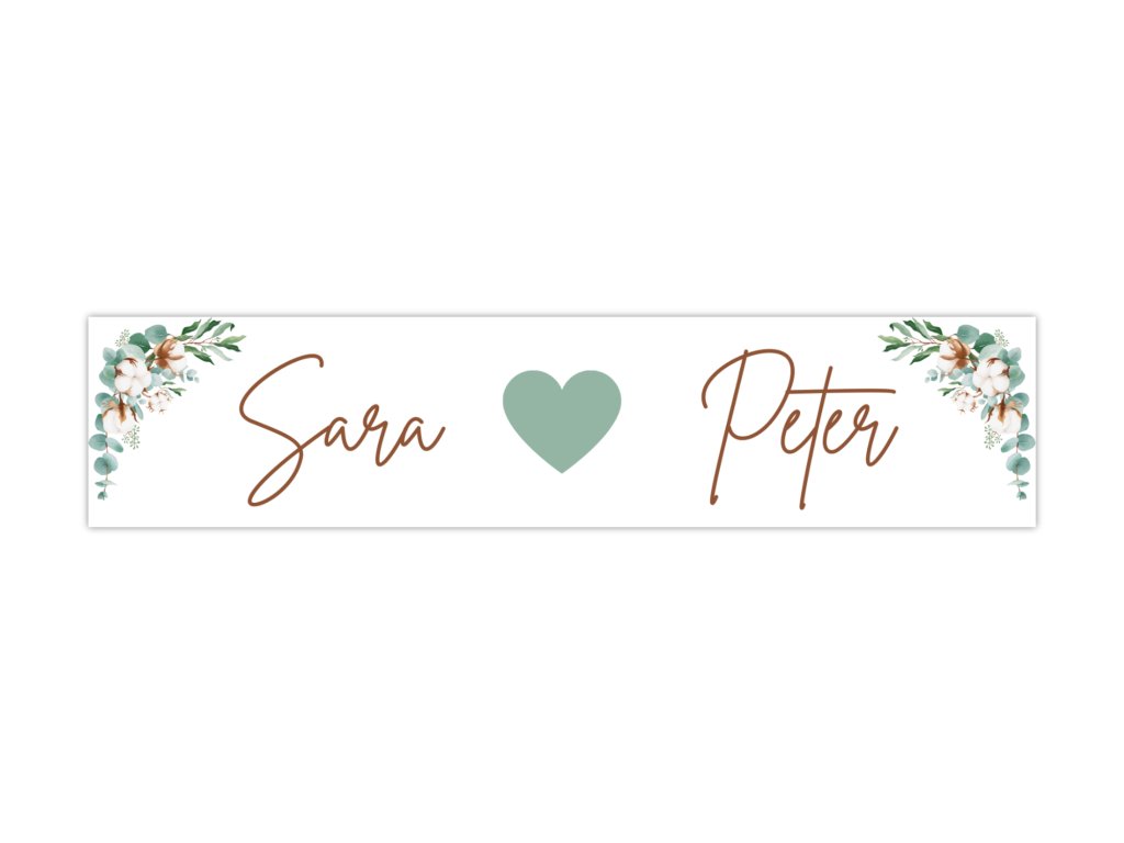 Adăugați un detaliu stilat și original mașinii voastre de nuntă! Autocolantul nostru tip plăcuță de înmatriculare pentru nuntă este ușor de aplicat, completează frumos decorul și va atrage cu siguranță toate privirile pe durata întregii călătorii festive. Alegeți dintre modele elegante sau amuzante și transformați convoiul de nuntă într-o experiență de neuitat.