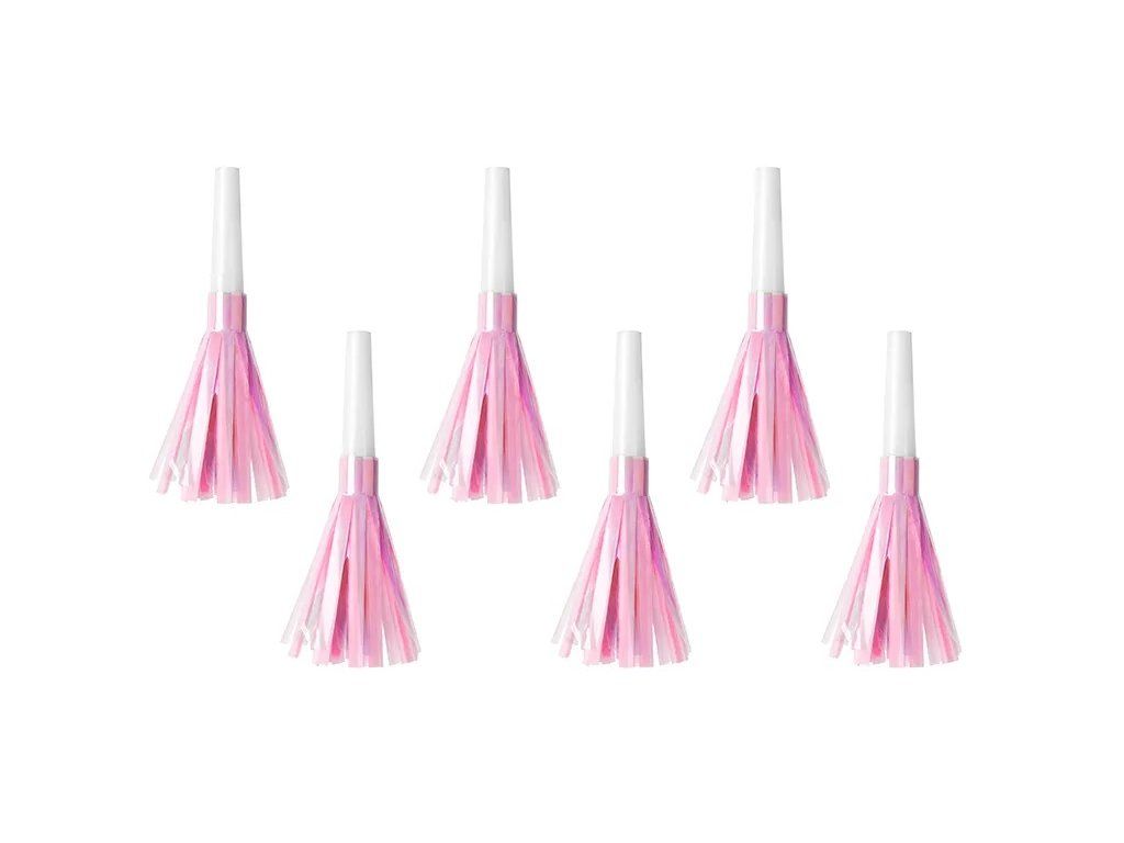 Dă startul distracției la petrecere cu trâmbițele roz! În pachet vei găsi 6 trâmbițe vesele care îi vor face să râdă pe toți invitații și vor crea cea mai bună atmosferă. Doar suflă și distracția este garantată! Sunt ideale pentru aniversări, petreceri de burlăcițe sau orice sărbătoare unde nu lipsesc râsetele și buna dispoziție. Cu aceste trâmbițe roz, petrecerea ta va fi pur și simplu de neuitat!