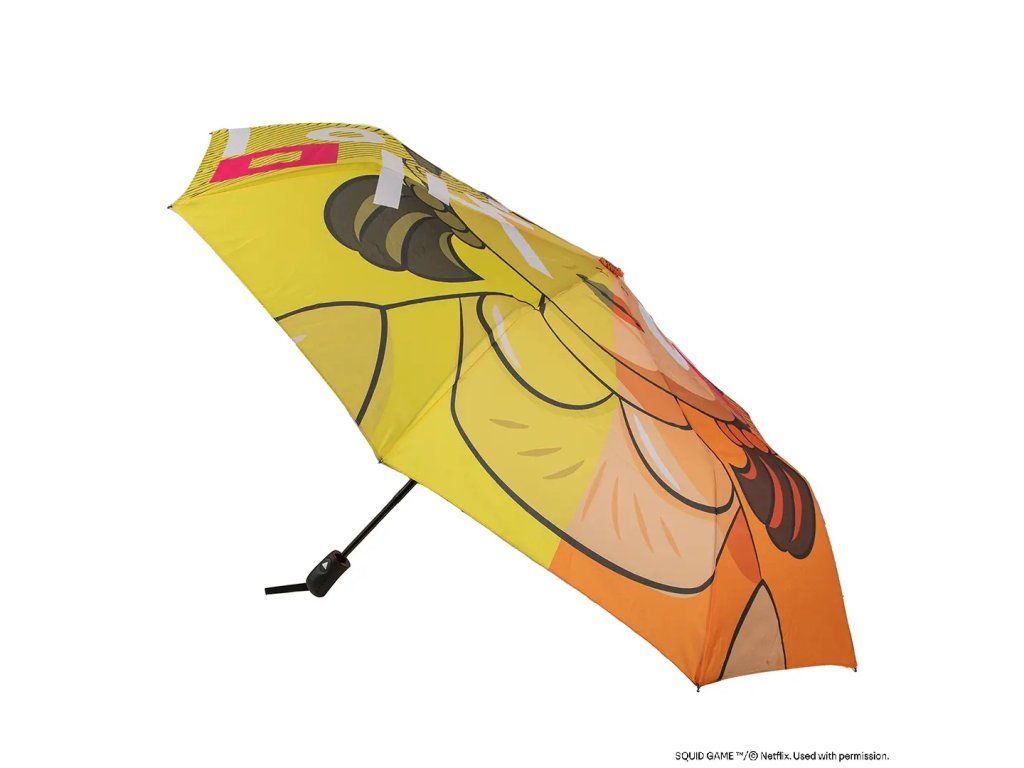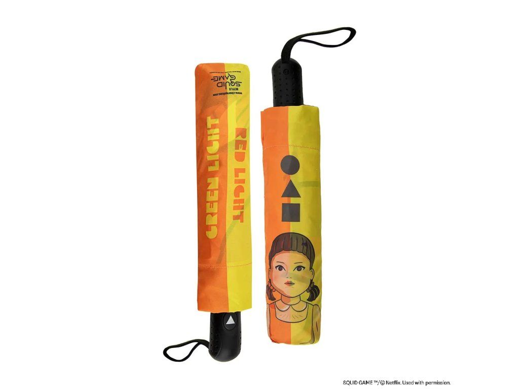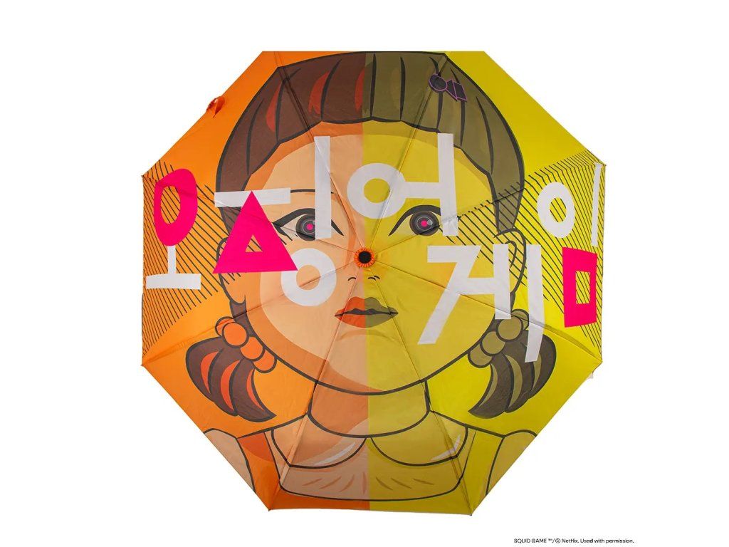 Atenție, te urmărește! Această umbrelă unică umbrelă cu păpușa iconică din serialul Squid Game este ideală pentru fanii care vor să iasă în evidență chiar și pe vreme ploioasă. Datorită cadrului rezistent, construcției ușoare și designului remarcabil, oferă nu doar protecție fiabilă împotriva ploii, ci și un aspect stilat cu un strop de suspans.