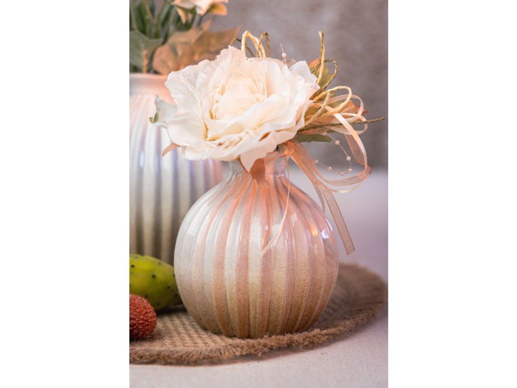 Creați o atmosferă captivantă pe masa D-voastră cu această vază de sticlă pentru flori și decorațiuni, care aduce un strop de farmec natural și stil în interiorul locuinței. Designul organic și texturile naturale ale vazei creează un contrast spectaculos cu florile, transformând-o într-un accesoriu deosebit pentru masa D-voastră.