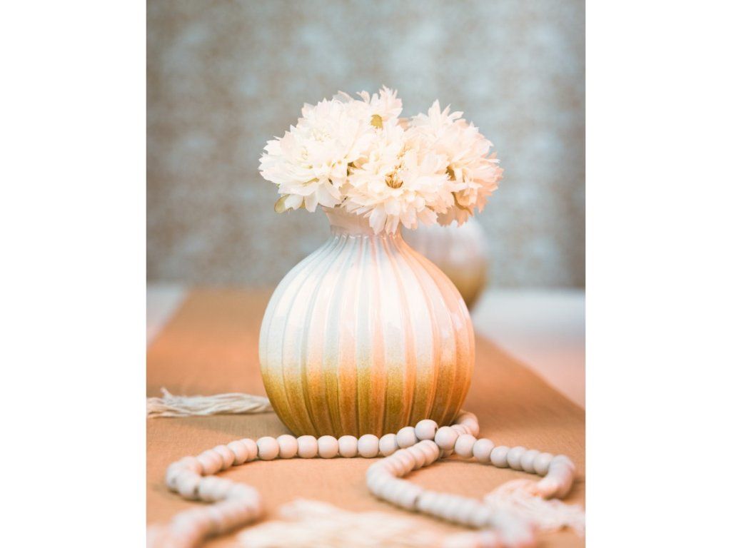 Vază sferică din ceramică - Albă 12 x 13 cm