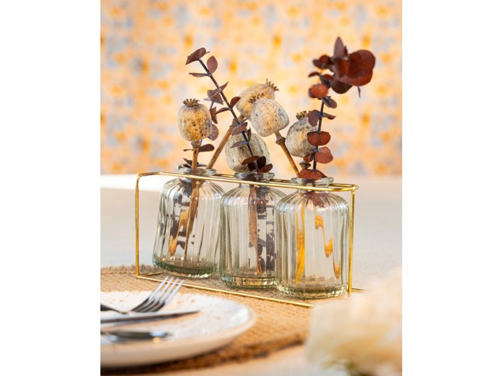 Aceste vaze decorative din sticlă cu gât îngust și sunt alegerea ideală pentru decorul de nuntă. Vazele elegante combină un design simplu, dar sofisticat, care completează perfect orice nuntă. Plasarea florilor sau a aranjamentelor florale delicate adaugă o atmosferă romantică și rafinată.