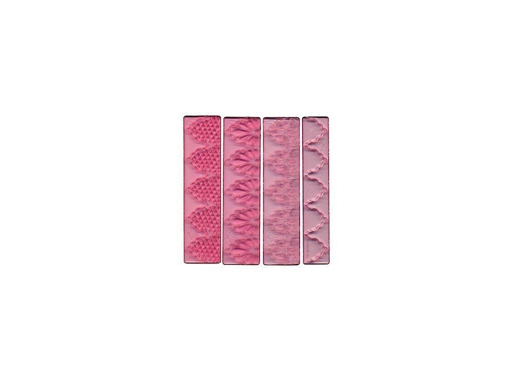 Mulaj dantelă este un instrument original pentru a crea modele interesante pe prăjituri și torturi. Este posibil să decorați părțile superioare și inferioare ale prăjiturilor cu dantelă, acestea sunt potrivite pentru prăjituri festive și de nuntă. Este posibil să presați pasta de acoperire cu dantelă sau să decupați forma dorită din pasta de acoperire.
