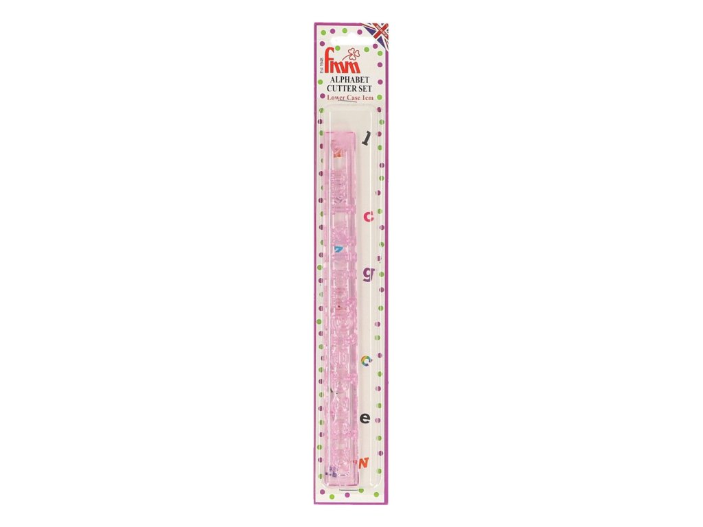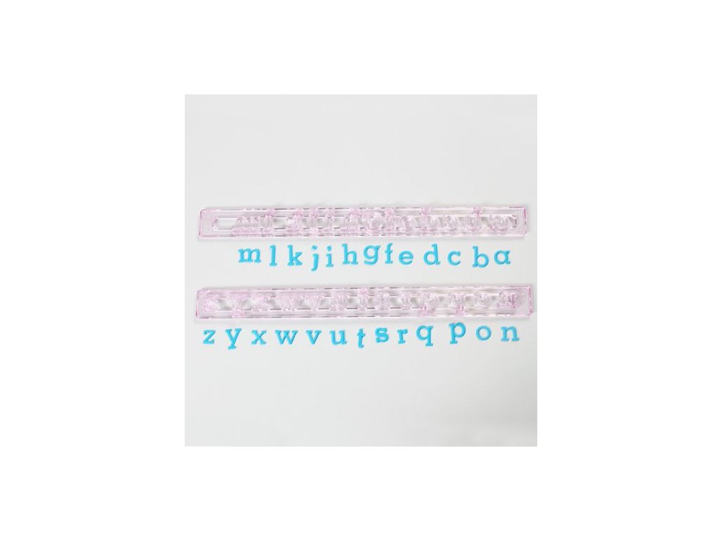 Decupator în forma clasică a unui mic alfabet este potrivit pentru prăjiturile obișnuite și pentru copii. Dimensiunea literelor este de 1 cm. Literele pot fi reliefate din diverse materiale de acoperire, fondant, gumpast etc. Literele îți vor decora efectiv prăjiturile și torturile și le vor oferi un aspect original. Formele pot fi lipite cu adeziv sau glazură comestibilă.